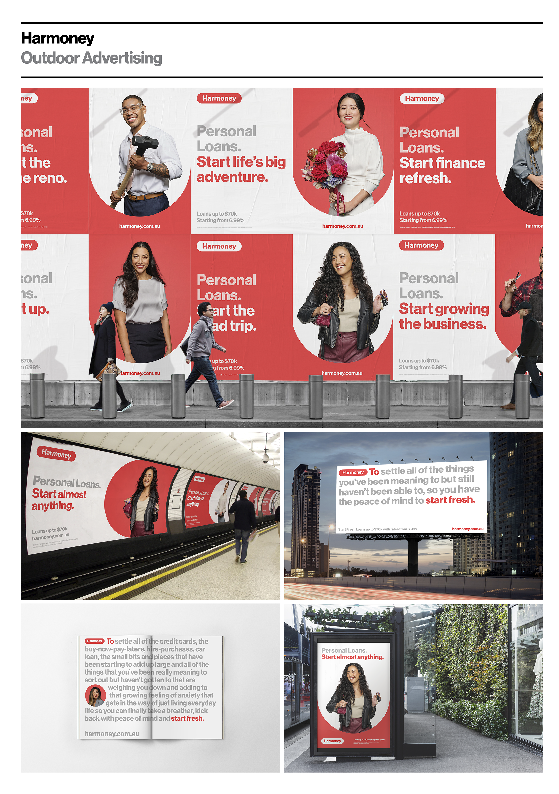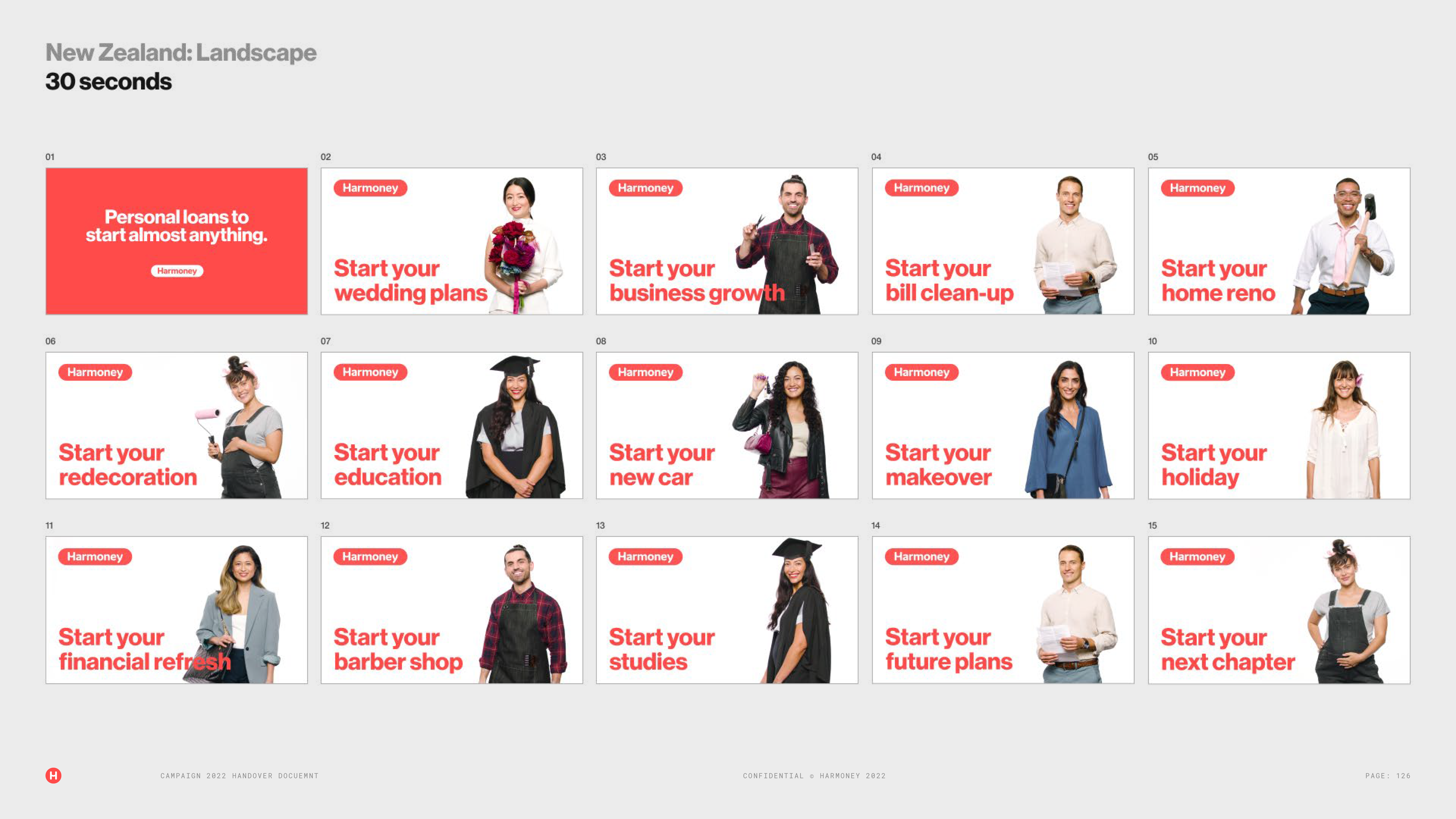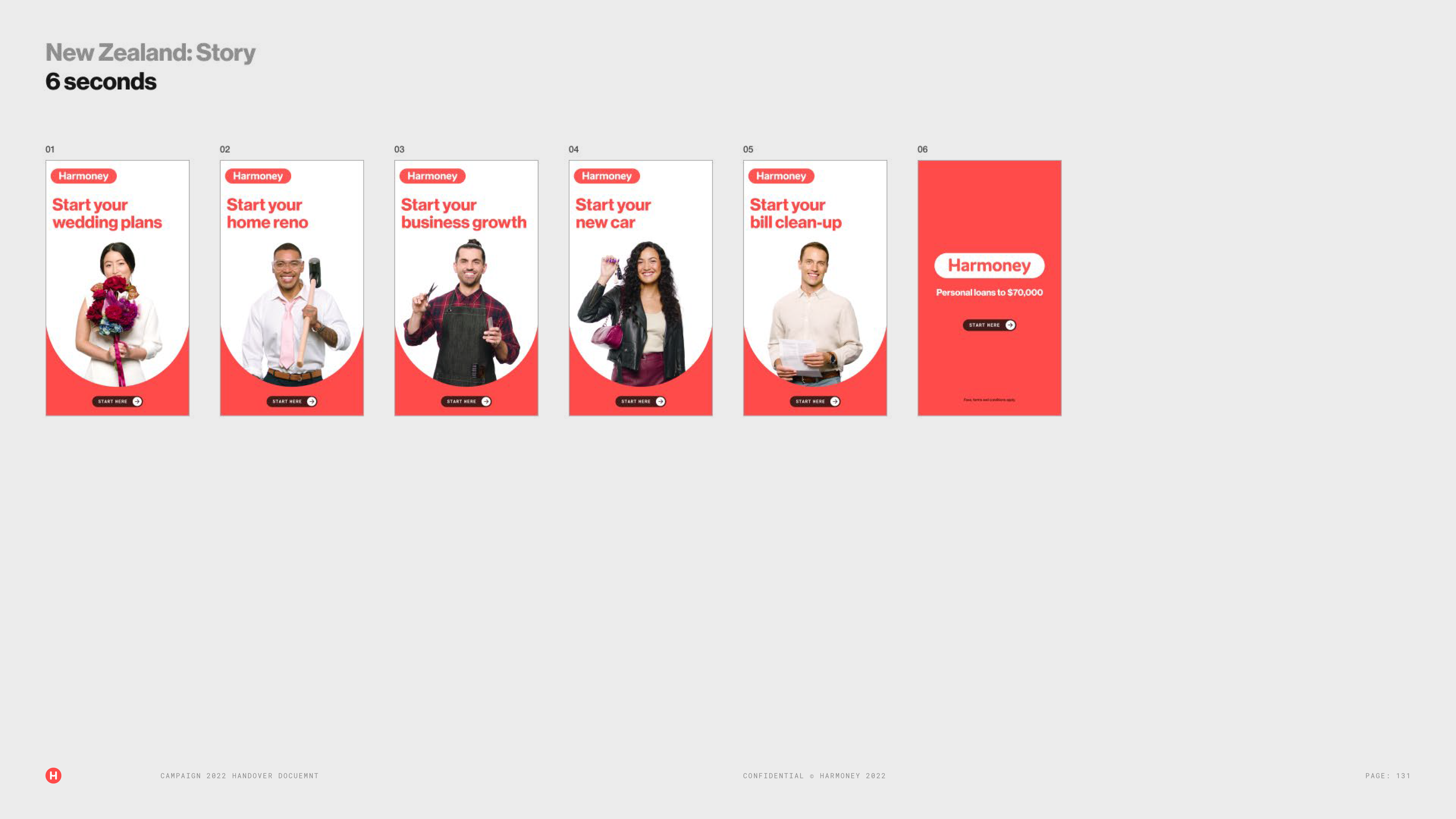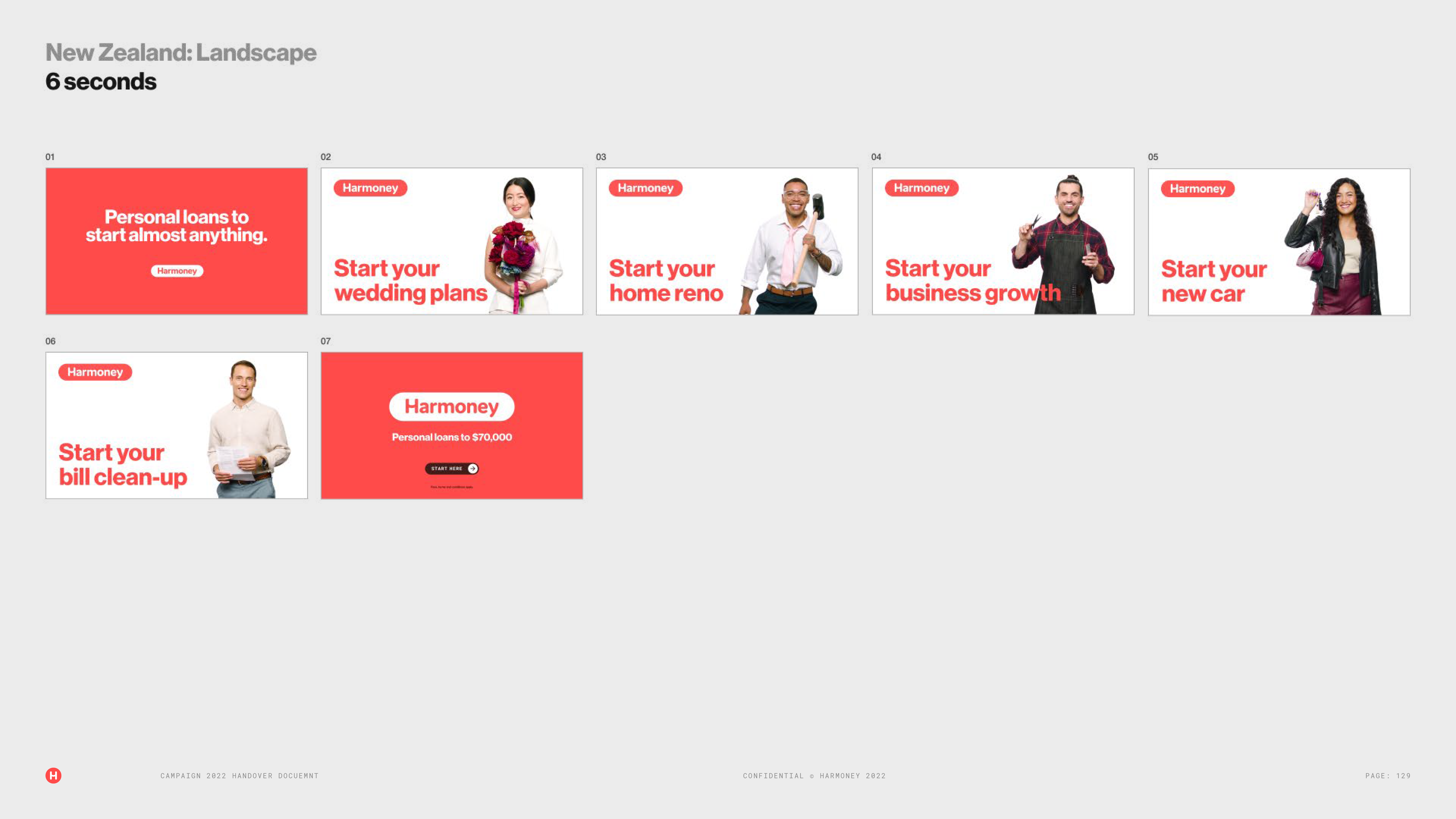 At Harmoney I managed a rebrand/redesign with an external agency Alt. At both companies I created a new brand architecture including; brand guidelines, new brand logo, brand tone of voice, marketing collateral and templates for all channels (digital and print), new website, new digital ad sets, OOH, new TV ads and radio. View the Harmoney brand guidelines from the rebrand that I managed here.